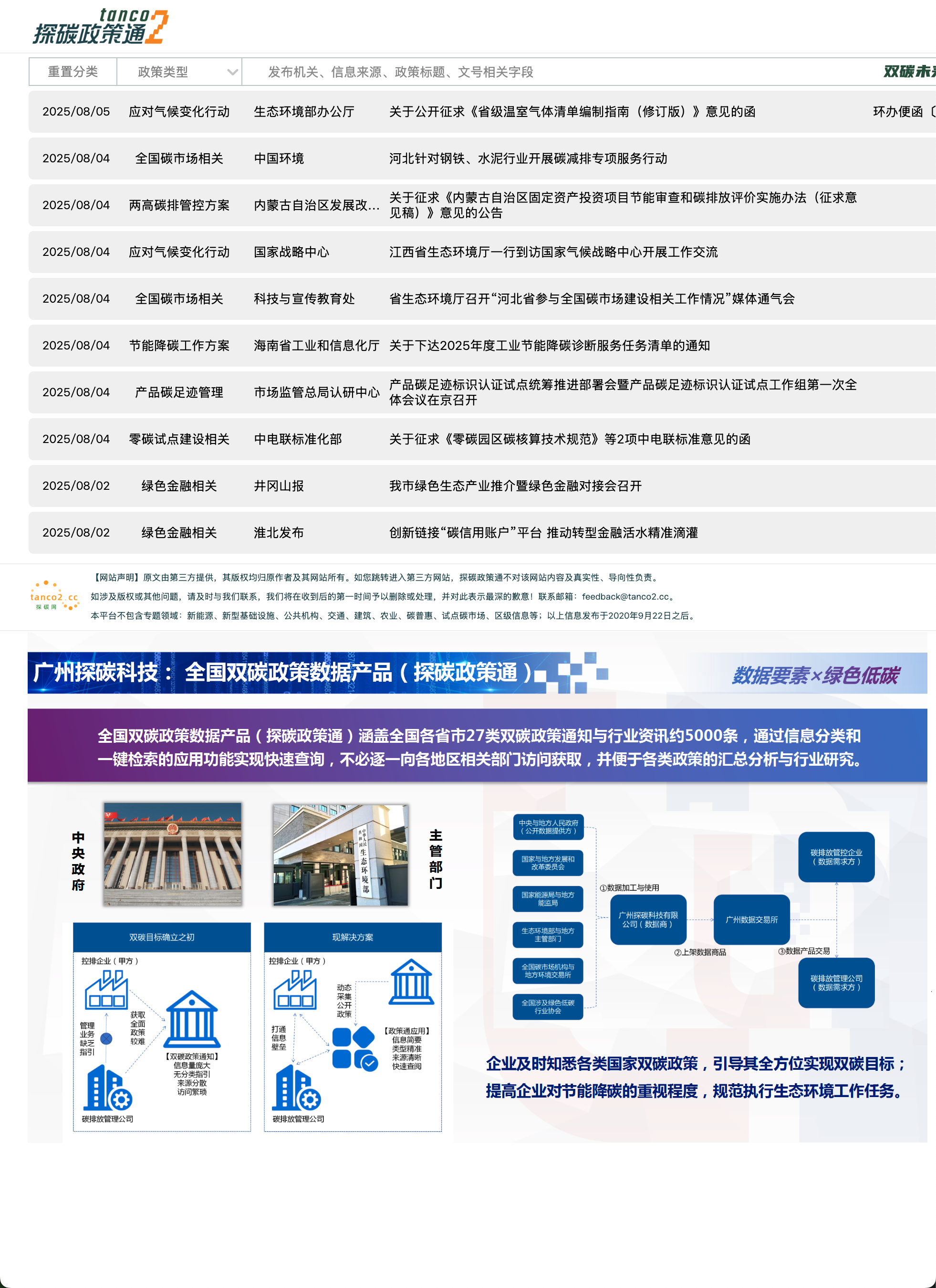 探碳公司旗下一款双碳领域政策通知的查询应用,使用者可根据自身需求对数据进行分类或检索,从而筛选出对应的政策通知并访问。